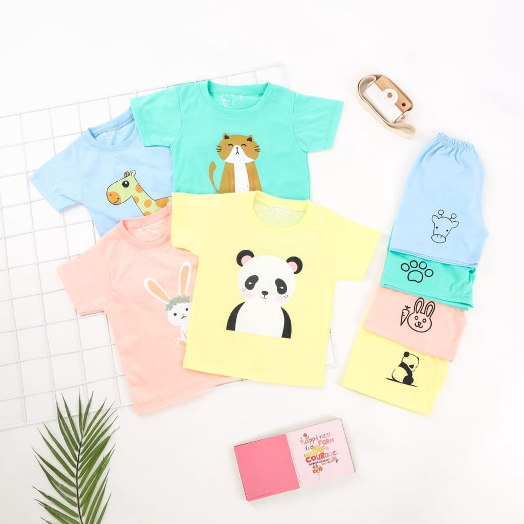 Deskripsi Ukuran : Size S 👕 Ld : 60 cm / P.badan : 40 cm 👖 Lingkar pinggang strech : 60 cm / Panjang Celana : 48 cm