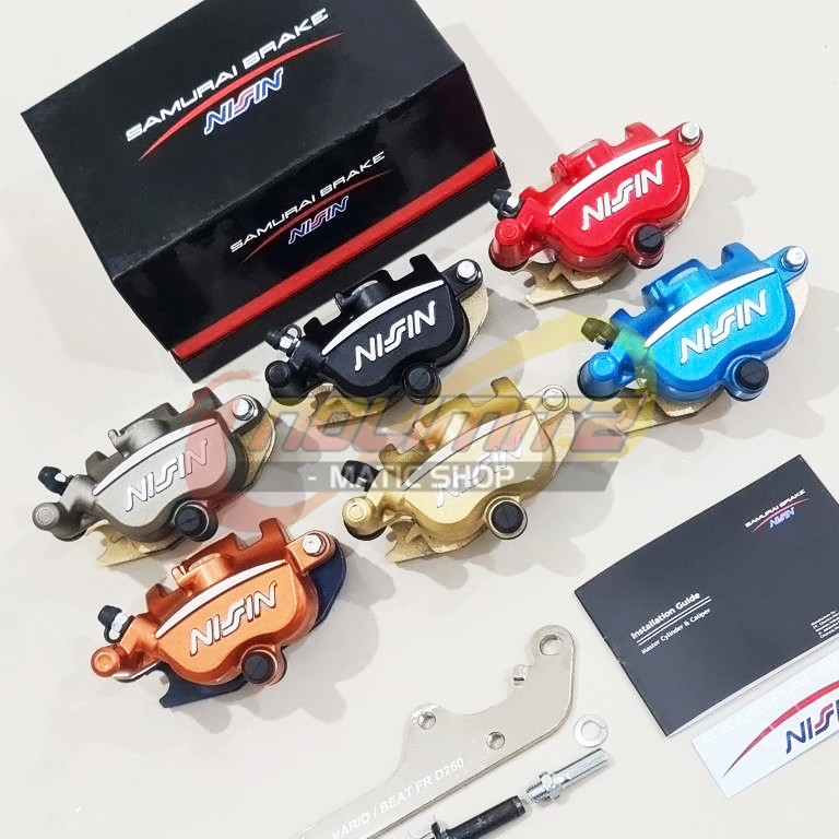 Isi Paket Penjualan: - Kaliper Unit - Kampas Rem - Bracket Kaliper - Stiker Nissin - Buku Panduan - Box Kemasan Ada 6 Pilihan warna: - Silver/Tittanium/Grey/Abu-abu - Hitam - Merah - Biru - Gold - Bronze/Perunggu