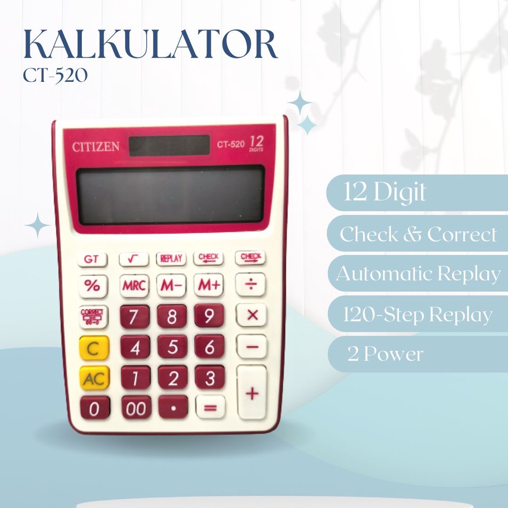KALKULATOR CITIZEN CT - 520 WARNA 12 DIGIT CHECK CORRECT MANIS COLOUR