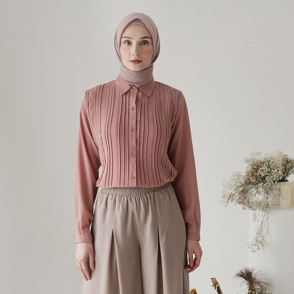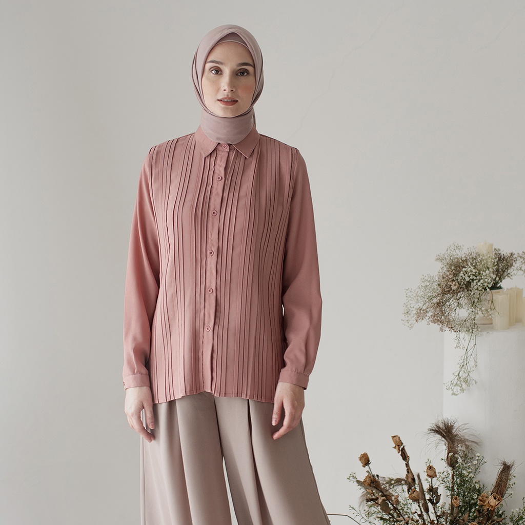 Fashion Muslim > Atasan Muslim Wanita > Kemeja, Blouse, & Dalaman Blouse > Kaluna by Aska Label - Atasan wanita kemeja plisket lengan panjang dengan manset warna abu taupe, pink mauve, hitam black