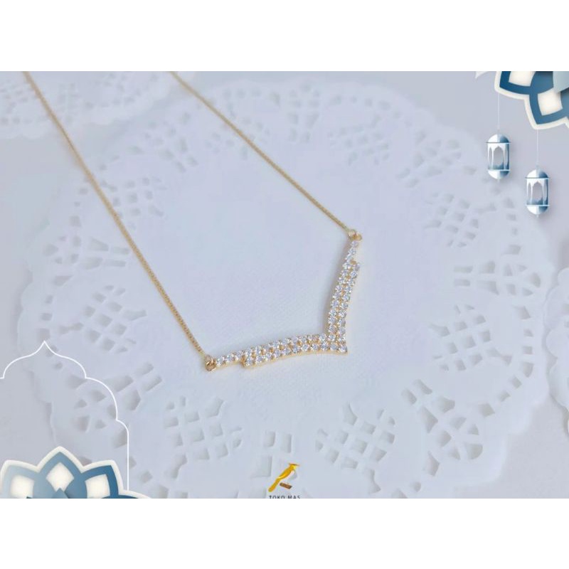 perhiasan ini dilapisi dengan rhodium dan emas, dan menggunakan permata dari bahan dasar zircon. perhiasan ini dilapisi dengan emas 18k dengan memiliki warna gold seperti emas asli