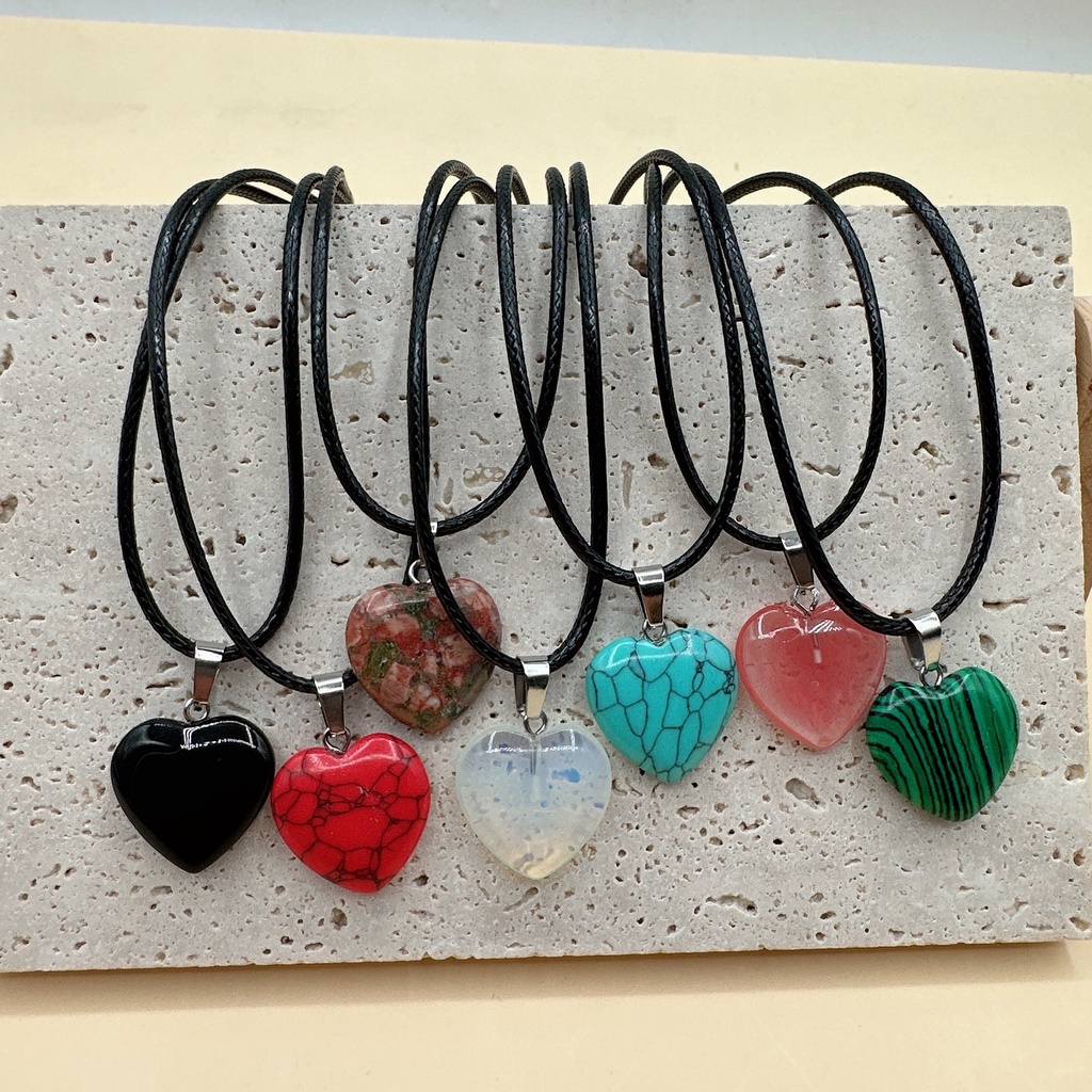 Detail Kalung Berbentuk Lima Cinta Giok Gaya Keren Manis Y2K Batu Rantai Tali Hitam
