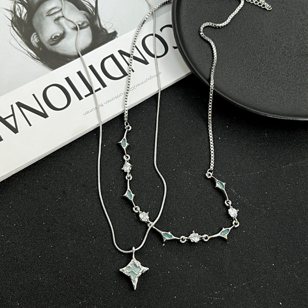 Detail Kalung Bintang Segi Empat Lapisan Ganda Aksesoris Kepribadian Temperamen Rantai Klavikula