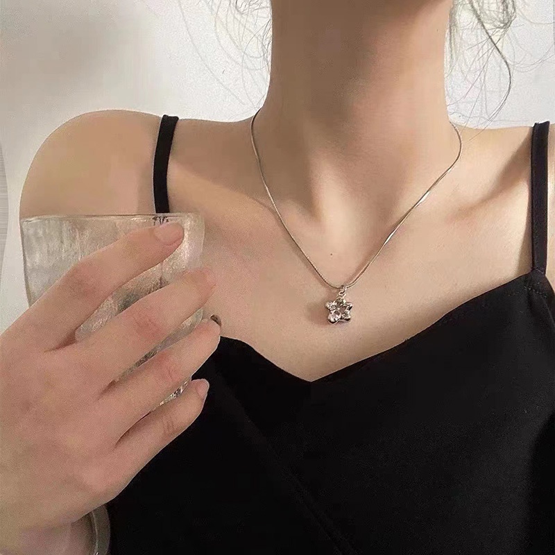 Detail Kalung Bunga Berlian Imitasi Bahan Alloy Korea Untuk Wanita