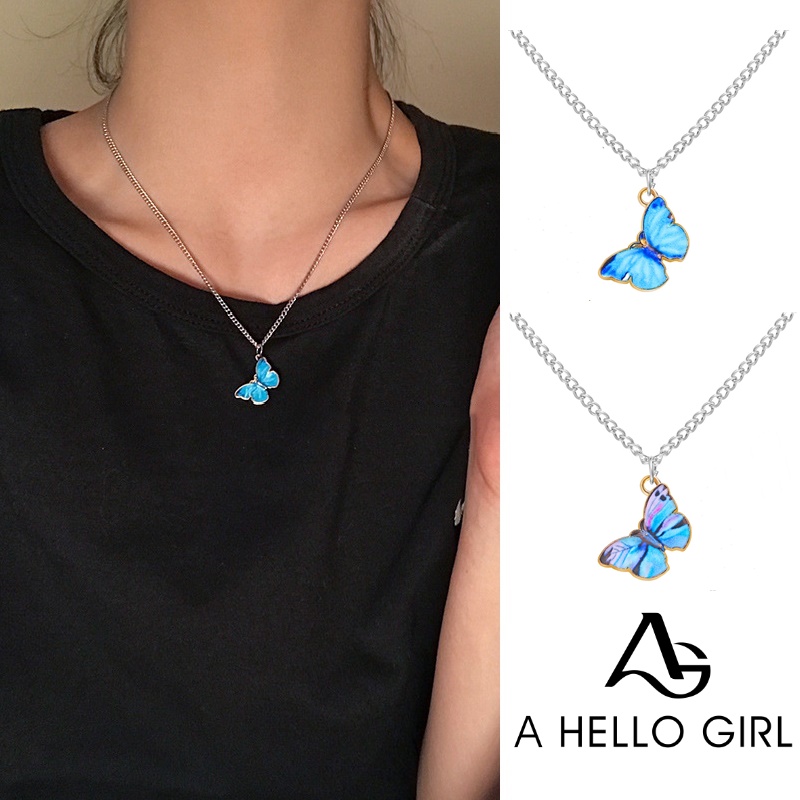 Detail Kalung Choker Liontin Kupu-Kupu Warna Biru Gradasi Gaya Korea Untuk Wanita