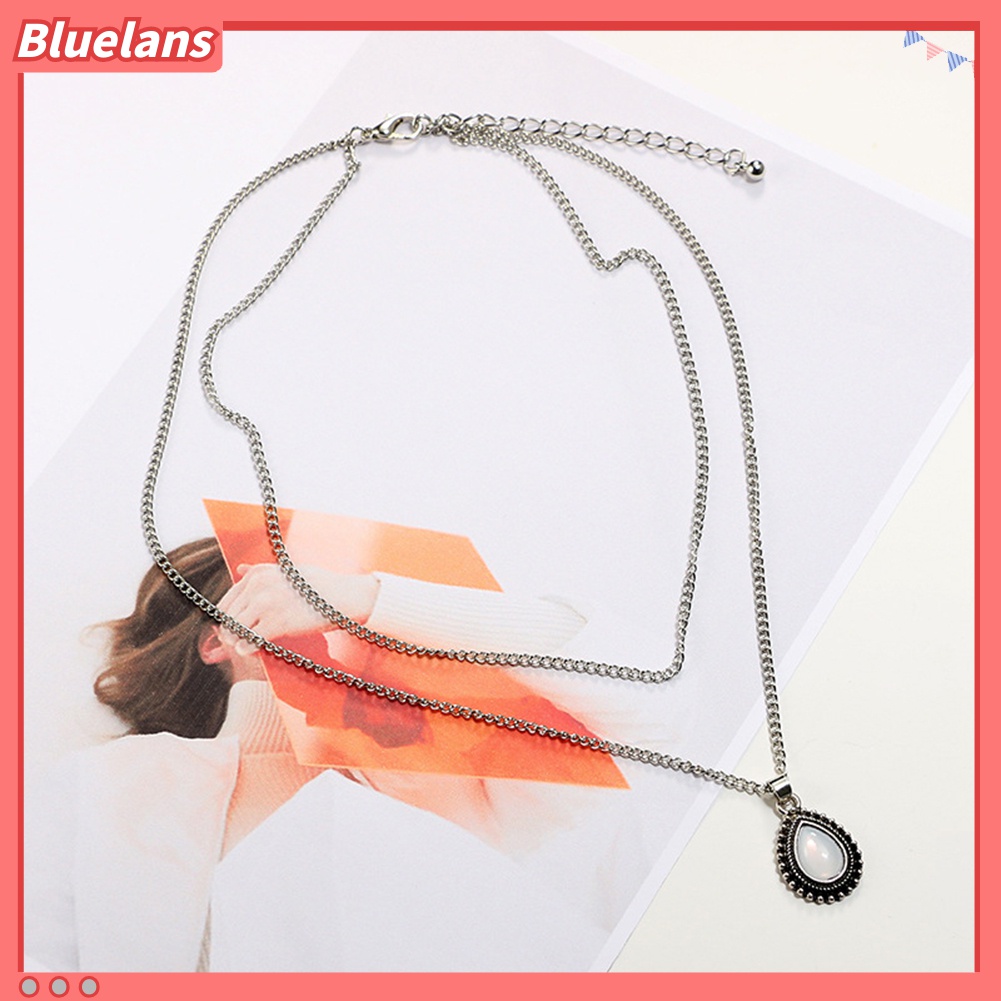 Detail Kalung Choker Liontin Opal Bentuk Tetesan Air Lapisan Ganda Gaya Vintage Untuk Perhiasan Wanita