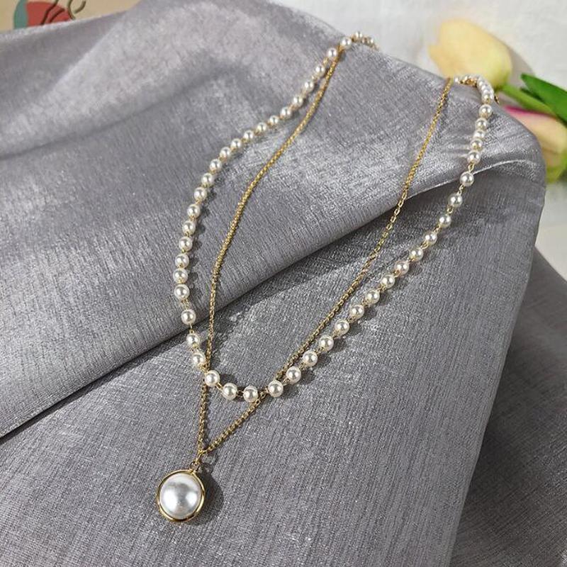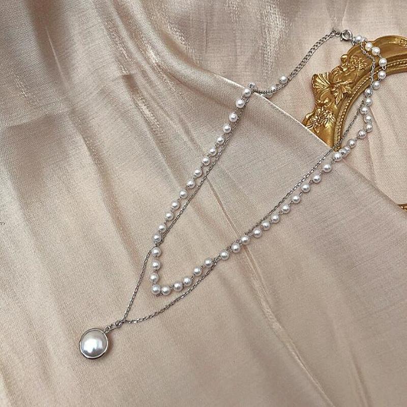 Detail Kalung Choker Model Double Layer Aksen Mutiara Gaya Korea Untuk Wanita