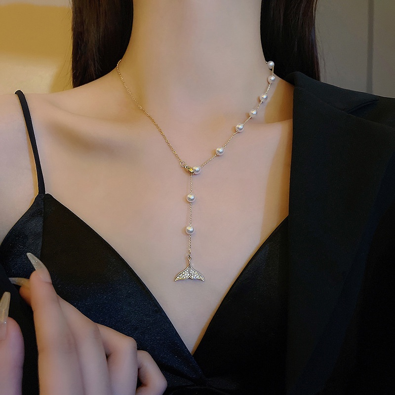 Detail Kalung Choker Model Rumbai Panjang Aksen Mutiara Untuk Wanita