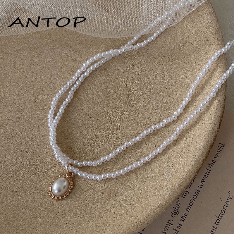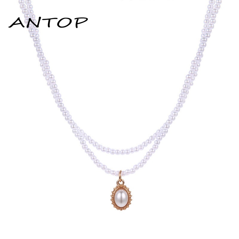 Detail Kalung Choker Rantai Klavikula Hias Mutiara Ganda Gaya Vintage Untuk Perhiasan ANTOP