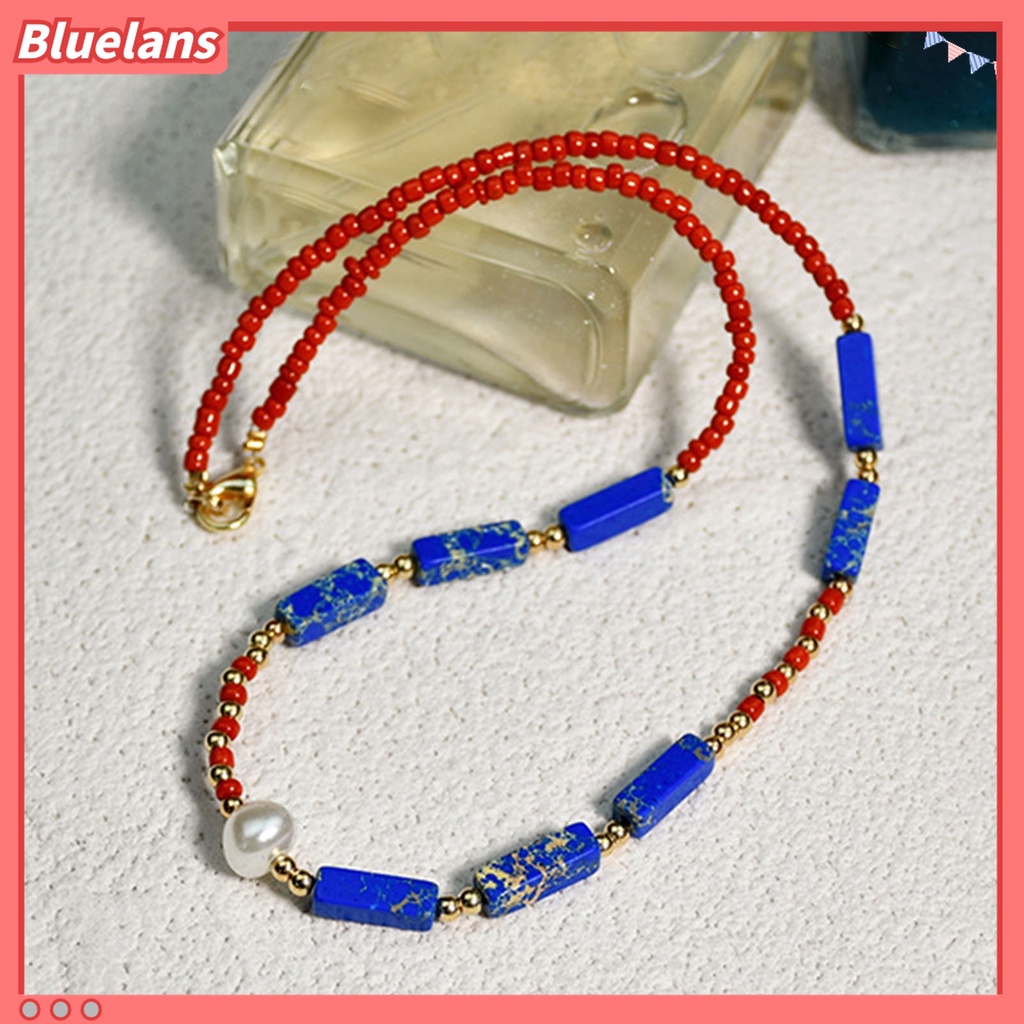 Detail Kalung Choker Rantai Klavikula Manik-Manik Batu Imitasi Biru Gaya Bohemian Untuk Perhiasan Harian