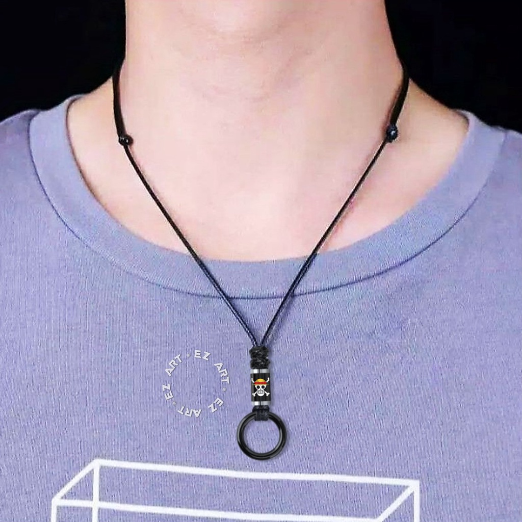 KALUNG CINCIN TABUNG GAMBAR ANIME ONE PIECE HEART PIRATES TALI KULIT KEPANG ANYAM KOREA
