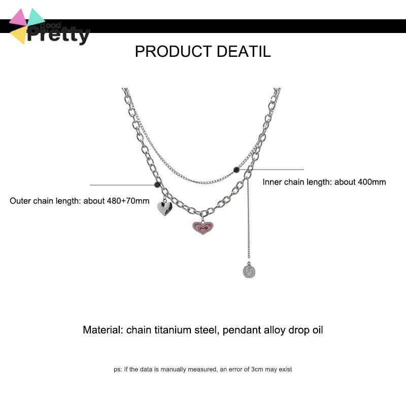 Detail Kalung Cinta Rantai Klavikula Kepribadian Hip Hop Bertumpuk Lapisan Ganda - PD