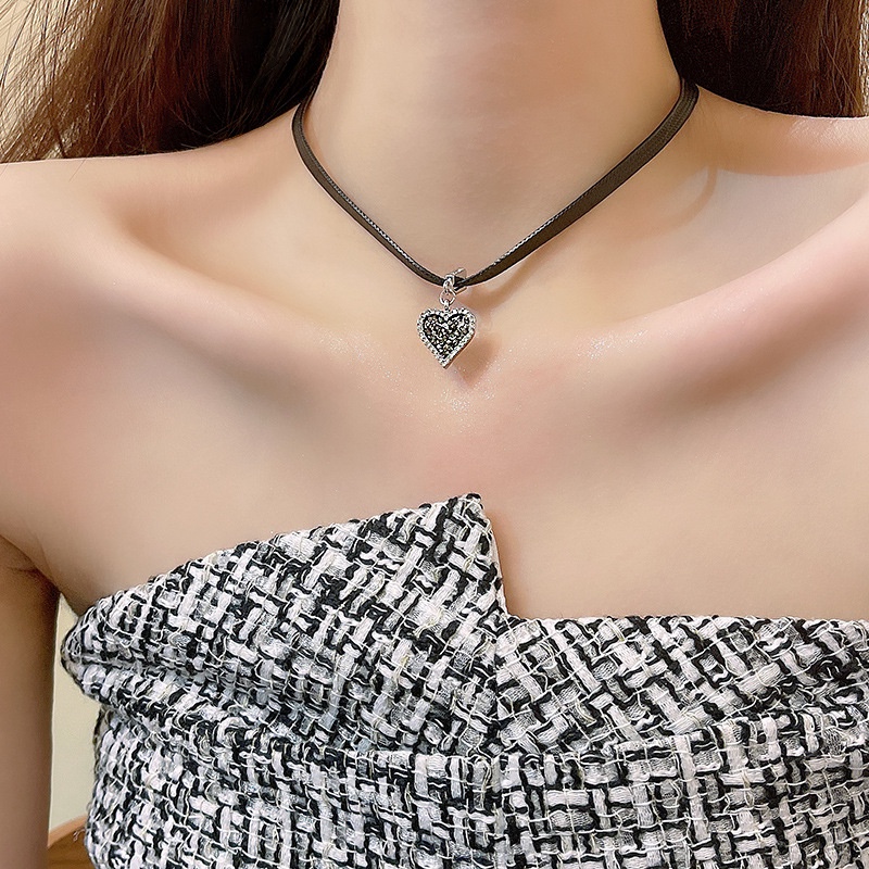 Aksesoris Fashion > Kalung > Liontin > Kalung Cinta Tali Kulit Hias Hitam Desain Mewah Ringan Dan niche Rantai Tulang Selangka mesh Merah Rantai Leher Yang Sama Untuk Wanita