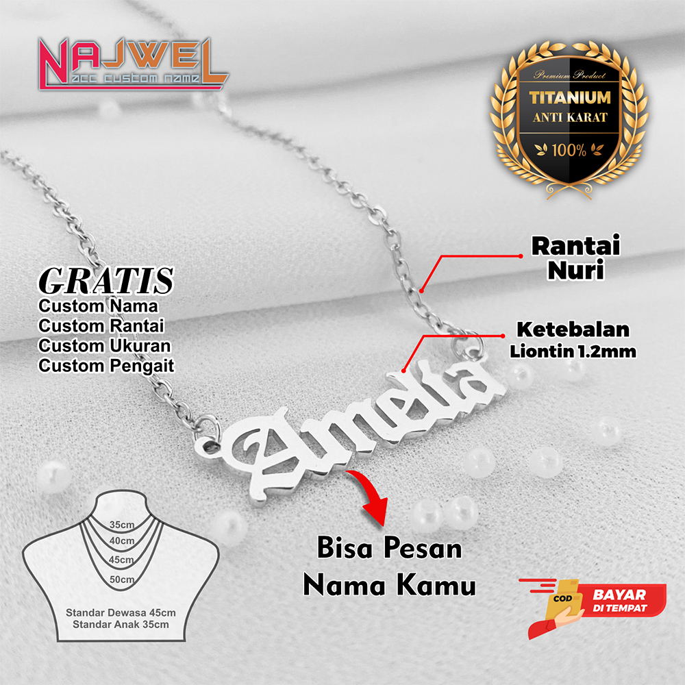 Detail Kalung Custom Nama Titanium Anti Karat Model Kalung Liontin Amelia Bisa Pesan Sesuai Nama Kamu Aksesoris Fashion Wanita Premium Titanium Terbaru 2023