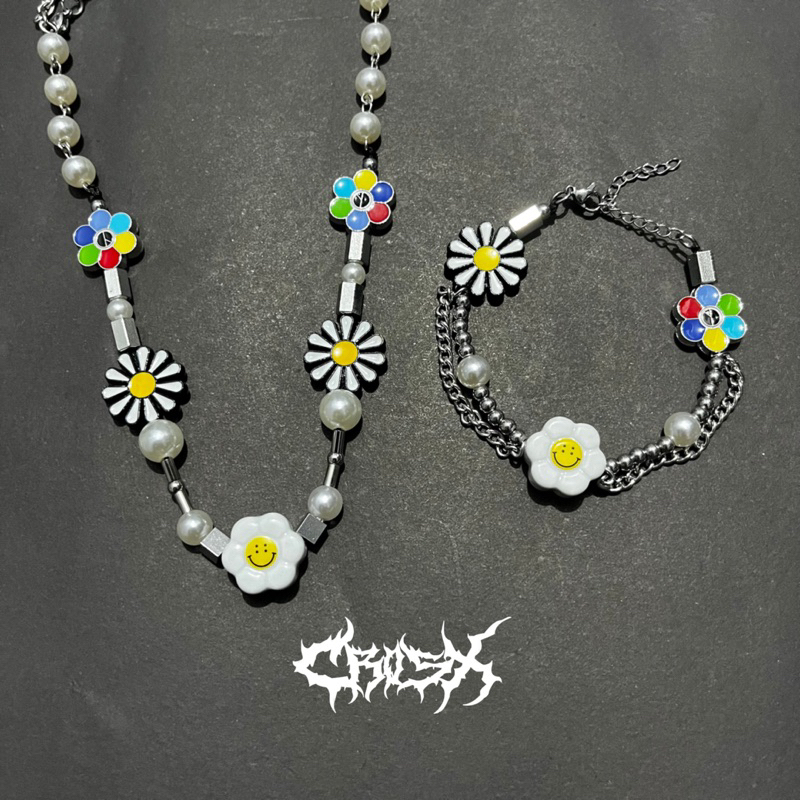 KALUNG DAISY SMILEY SUN FLOWER PEARL CHAIN NECKLACE BRACELET / GELANG MUTIARA BUNGA MATAHARI GELANG RANTAI KALUNG MANIK MANIK KALUNG RANTAI HIP HOP CHOKER KALUNG LIONTIN STYLE KOREA CHAIN NECKLACE KALUNG SILVER TITANIUM AESTHETIC KALUNG PRIA WANITA