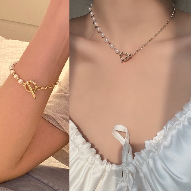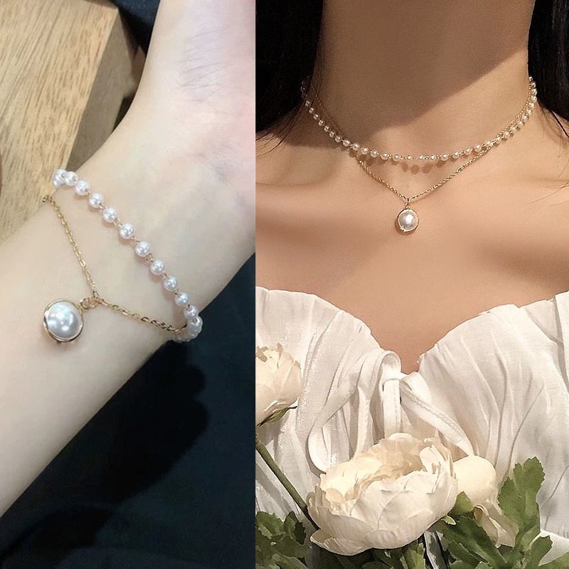 Detail Kalung Dan Gelang Liontin Mutiara Gaya Hip Hop Korea Untuk Wanita