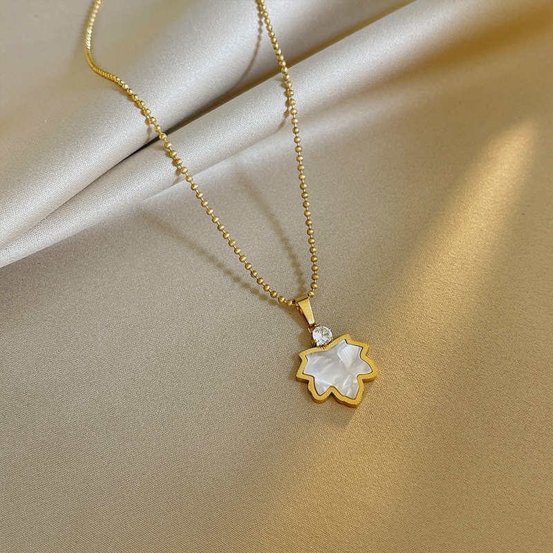 Detail Kalung daun maple zircon titanium anti karat harga grosir bisa cod