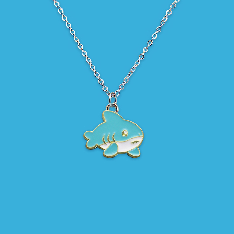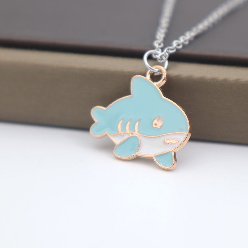 Detail Kalung Dengan Liontin Bentuk Kartun Ikan Hiu Bahan Alloy Untuk Wanita