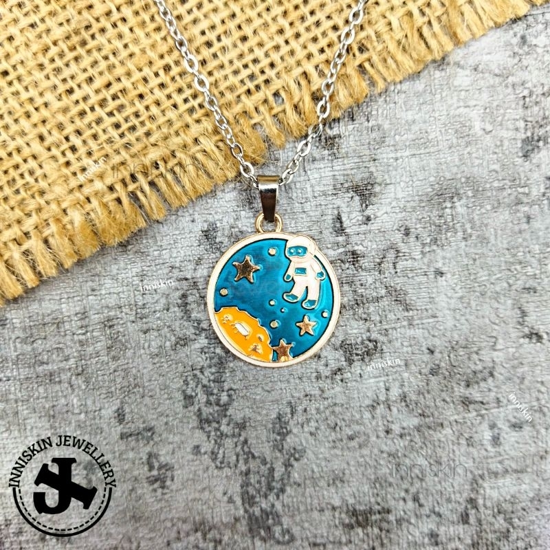 • Bahan : Stainless • Warna Kalung : Silver • Panjang Kalung : 45Cm • Pengait Kalung : Stainless • Liontin : Earth Astronot