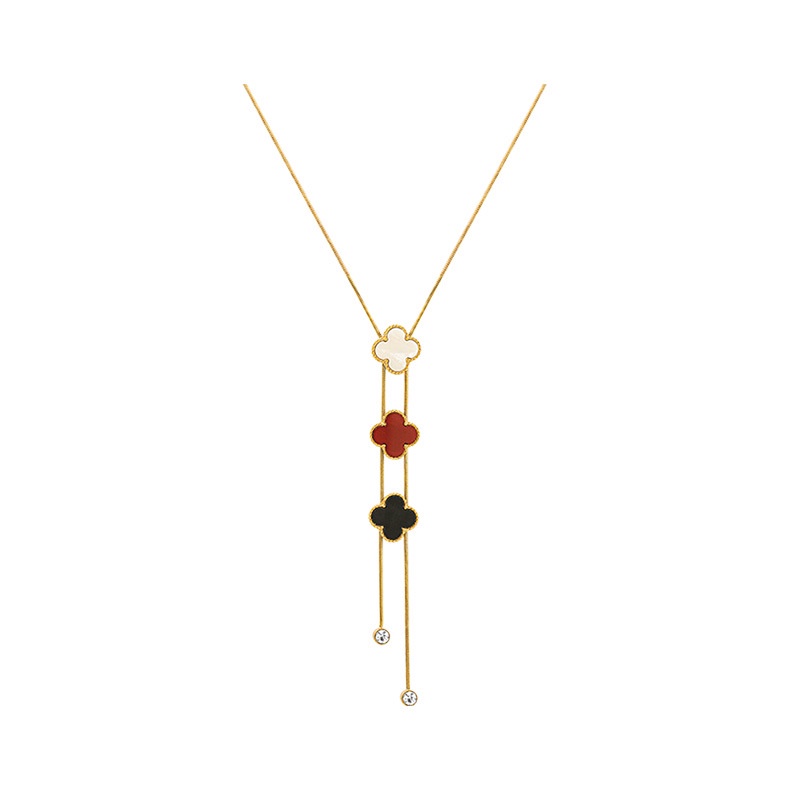 Detail Kalung Emas Baja titanium Liontin Semanggi Tiga Warna Baru