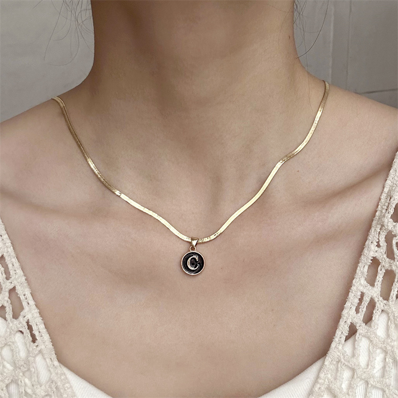 Aksesoris Fashion > Kalung > Liontin > Kalung Emas Liontin Tidak Alergi Dan Tidak Luntur Untuk Wanita Indah26Huruf Klavikula Kalung Ular Rambut Langsung Produsen
