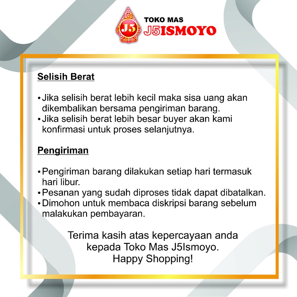 Berat Emas : 0.400 gram Kadar Emas : 10 K Size : standart anak ( bisa di adjust) Harga ACC : Rp. 50.000