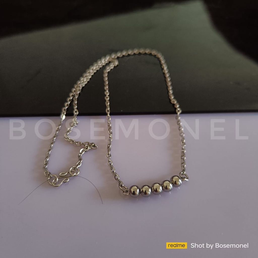 - Bahan : titanium/stainless steel, tidak berkarat, tidak luntur, tidak menyebabkan iritasi/alergi di kulit meski dipakai setiap hari dan aman kena air, keringat maupun parfum. - Variasi dengan 5 bola-bola ukuran 5mm, cantik dan elegan. - Ukuran lengkap untuk gelang tangan, gelang kaki dan kalung dari usia baby sampai jumbo. Silakan pilih panjang rantai yang diinginkan di variasi produk. - Harga untuk per pcs produk dengan kemasan menarik setiap produknya.