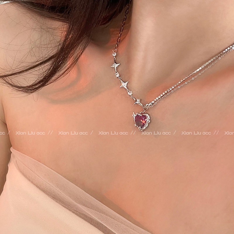 Detail Kalung Geometris Hati Kristal Bahan Alloy Korea Untuk Wanita
