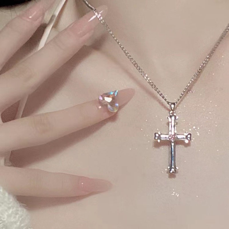 Detail Kalung Geometris Salib Hati Bahan Alloy Berlian Imitasi Fashion Untuk Wanita