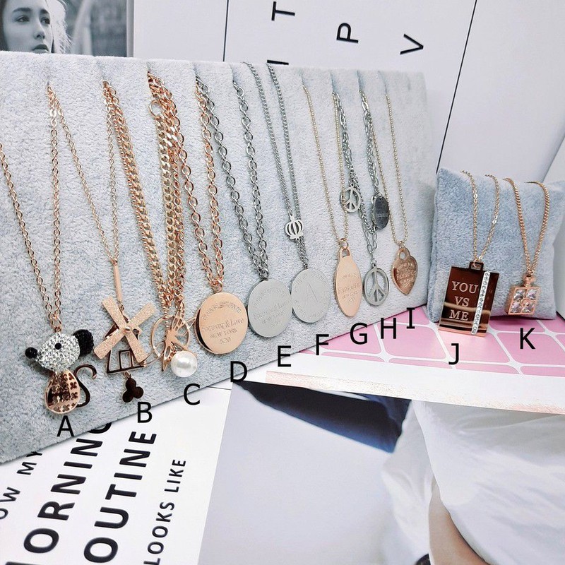 Kode: BN421 Material: Stainless Steel Warna: Rosegold, Silver Semua ada sisa/extra rantai 5cm E. Panjang 54cm, Liontin 2,5cm F. Panjang 72cm, Liontin 2,5cm G. Panjang 70cm, Liontin 1,9x3,5cm H. Panjang 48cm, Liontin 1,9cm I. Panjang 70cm, Liontin 2x2,5cm J. Panjang 70cm, Liontin 2,5x3,9cm