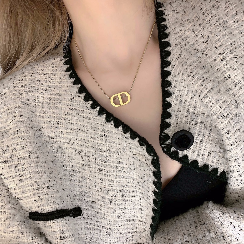 Detail Kalung Huruf CD Korea Baja Titanium Kalung Rantai Ular Tipis