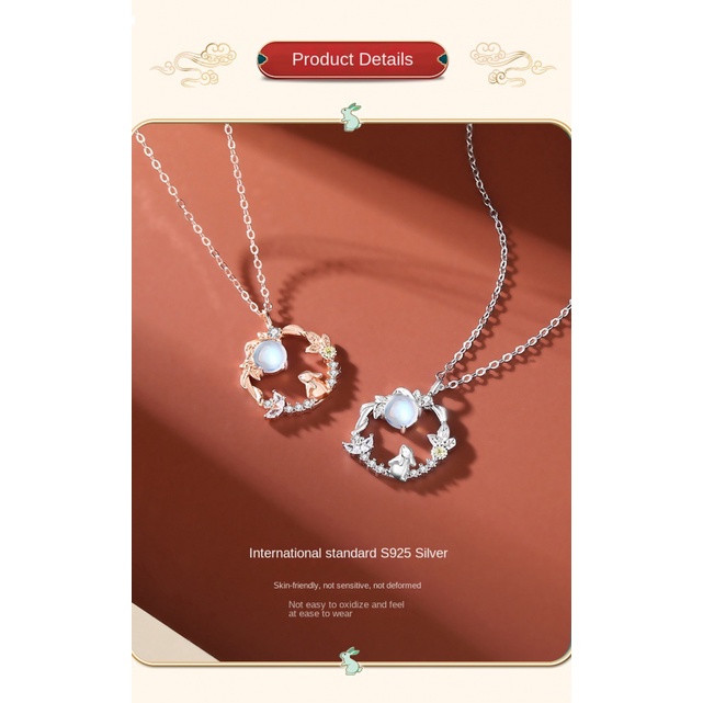 Aksesoris Fashion > Kalung > Kalung Kelinci Wanita Sterling Silver Asli Desain Niche Nasional Trendi Hutan Liontin Moonstone Benming Tahun Rabbit Year Sweater Chain