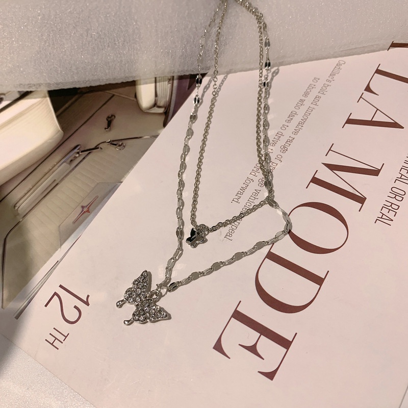 Detail Kalung Klavikula Model double layer Desain Kupu-Kupu Aksen Berlian Untuk Wanita