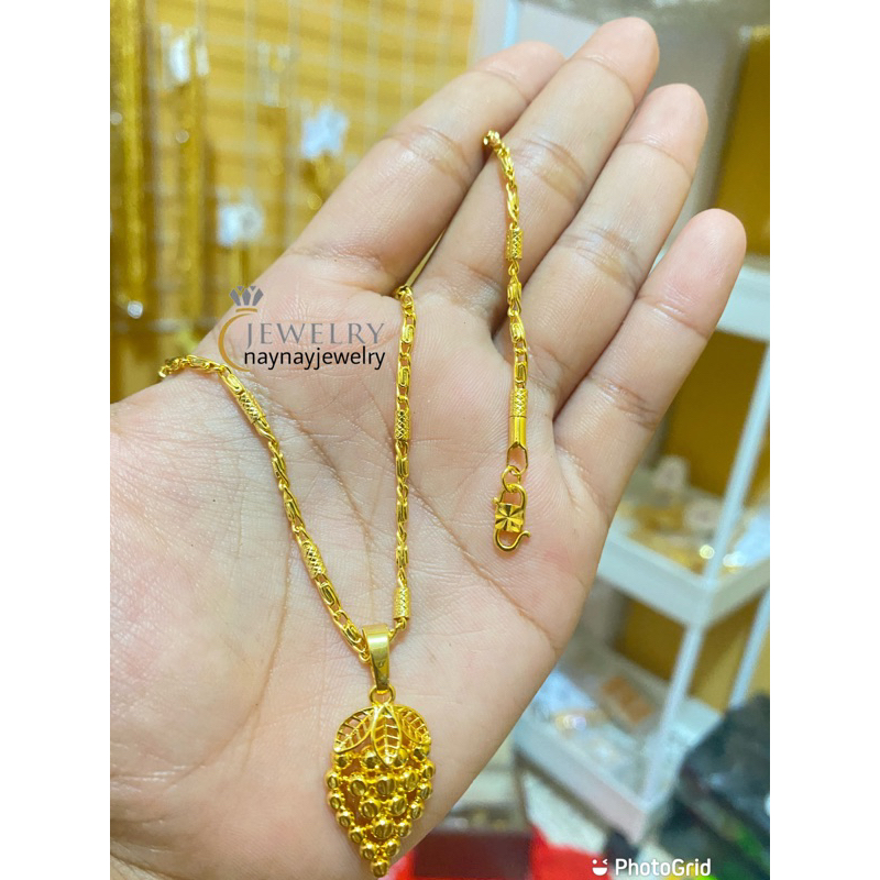 Detail Kalung koin bambu Anggur sedang warna 24k