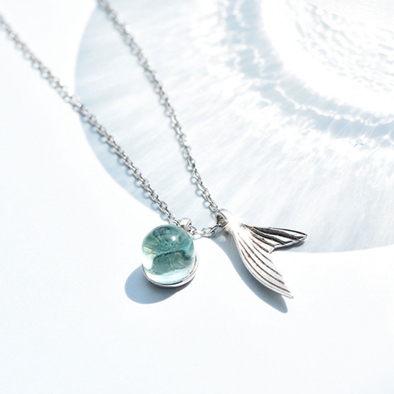 Detail Kalung Kristal Biru Mermaid Warna Perak Klasik Untuk Wanita Kualitas Tinggi Perhiasan Fashion Baru