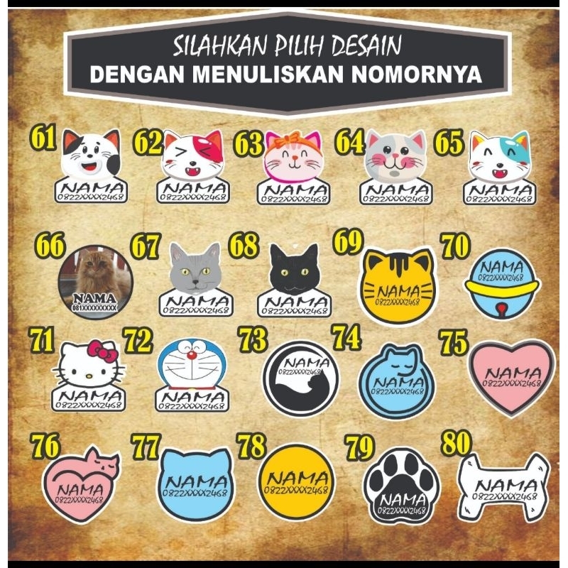 Detail Kalung kucing nama custom AKRILIK & PVC /harga sudah termasuk kalung motif + lonceng +nama
