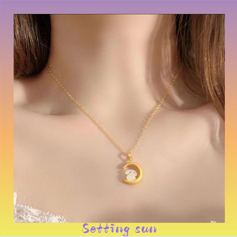 Detail Kalung Lapis Emas Desain Kelinci Dan Bulan Untuk Wanita TN