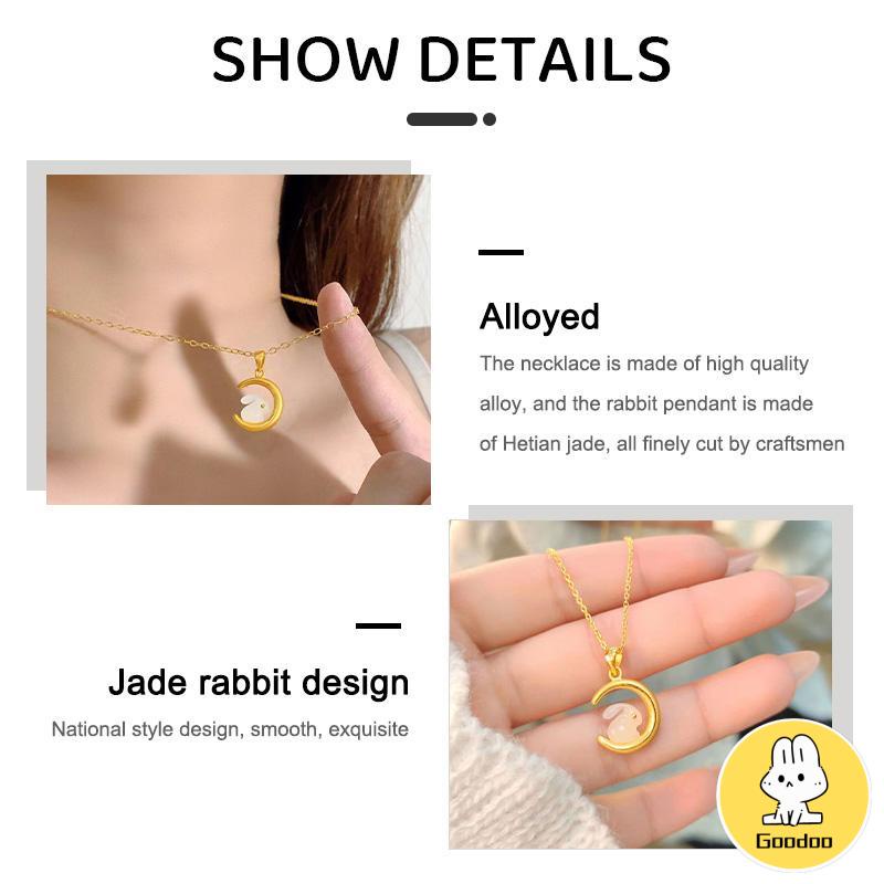 Detail Kalung Lapis Emas Desain Kelinci Dan Bulan Untuk Wanita -Doo