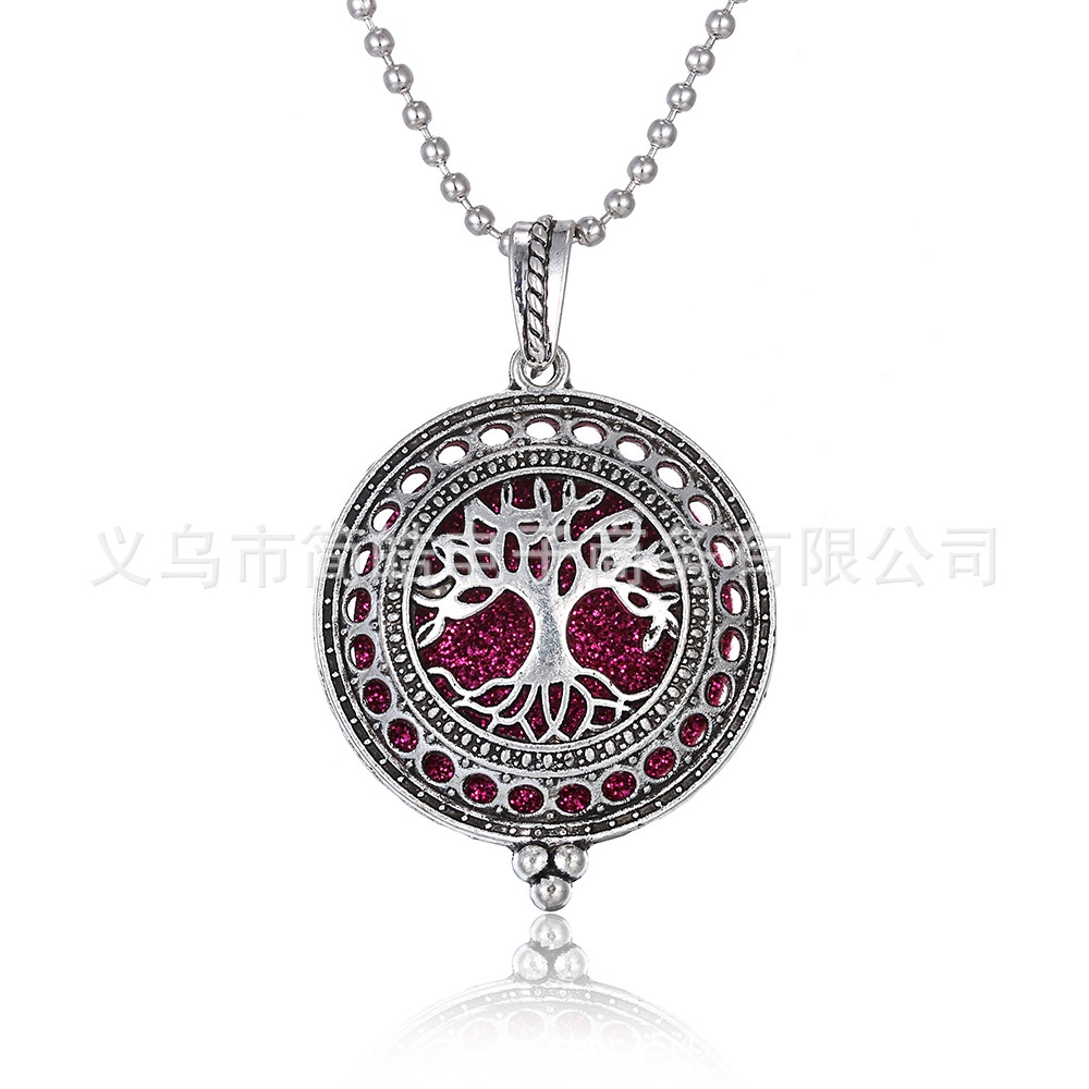Detail Kalung Liontin Aromaterapi Pohon Gajah Kehidupan Magnet Kotak Parfum Pendant Rantai Manik Bulat Grosir
