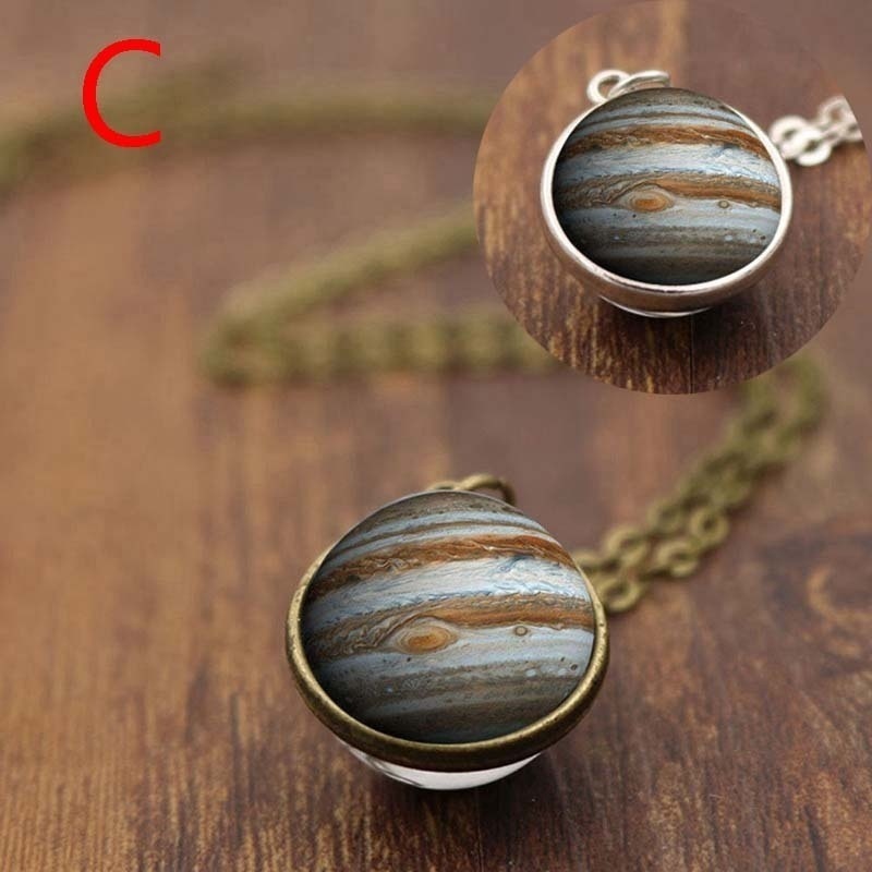 Detail Kalung Liontin Bola Kaca Dua Sisi Motif Galaksi Matahari Bumi Jupiter Mars Untuk Pria Dan Wanita
