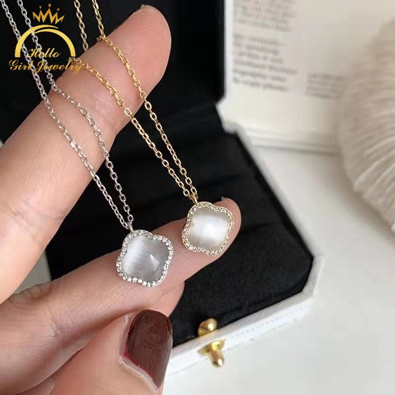 Detail Kalung Liontin Daun Clover Opal Zircon Gaya Korea Untuk Wanita