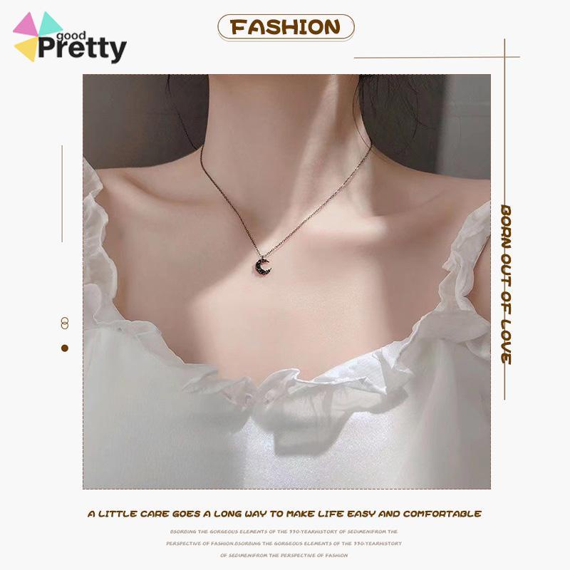 Detail Kalung Liontin Korea Bulan Berlian Hitam Kalung Rantai Tulang Selangka Untuk Wanita - PD