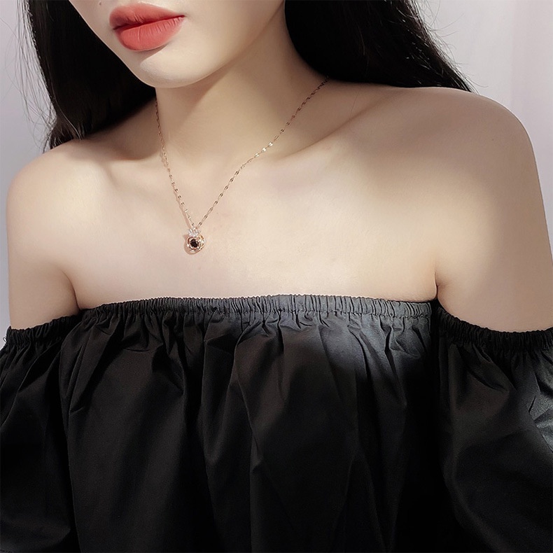Detail Kalung Liontin Mahkota Bahan Titanium Steel Aksen Zircon Gaya Korea