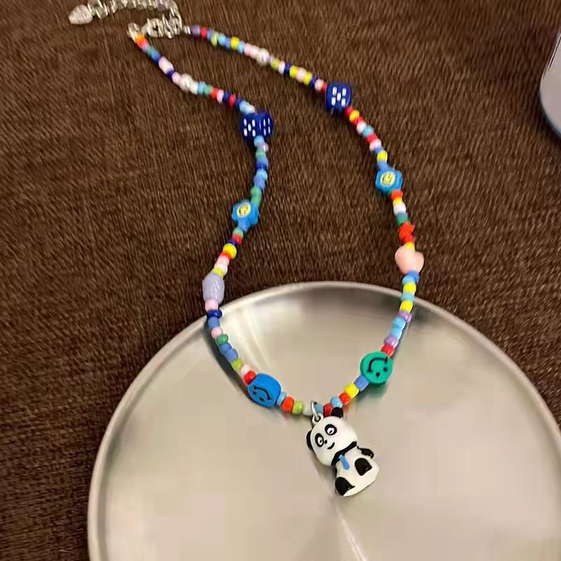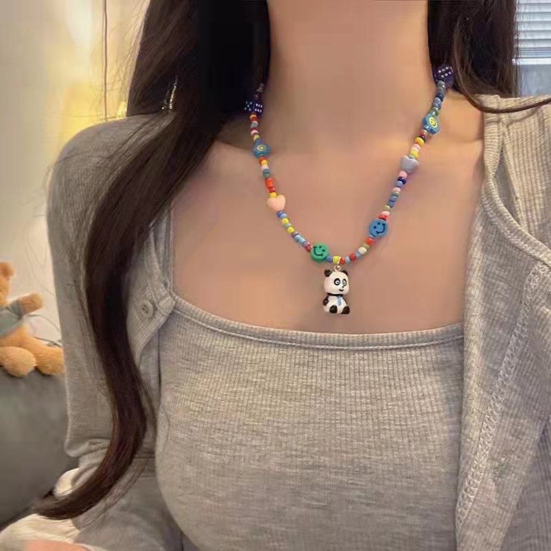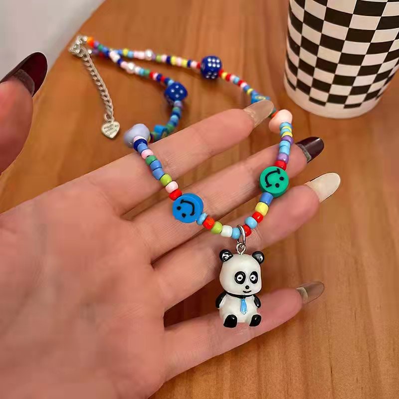 Detail Kalung Liontin Panda Lucu Warna-Warni Smiley Face Love Beads Rantai Klavikula