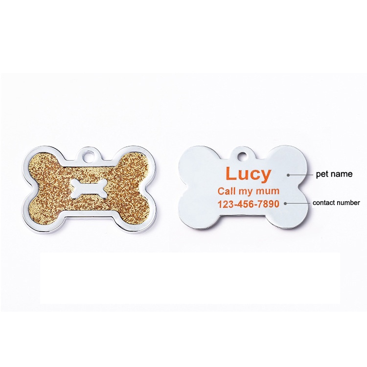 Jenis: Tag ID Hewan Peliharaan/Aksesoris Liontin Warna: merah/merah muda/emas/biru/merah mawar/perak/ungu/hijau/ Ukuran: 4.0*2.5cm Bentuk: tulang Bahan Logam: Logam Ras yang Berlaku: kucing anjing kucing