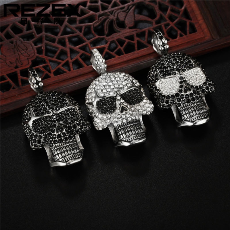 Detail Kalung Liontin Tengkorak Aksen Zircon Gaya Punk Hip-Hop Untuk Pria
