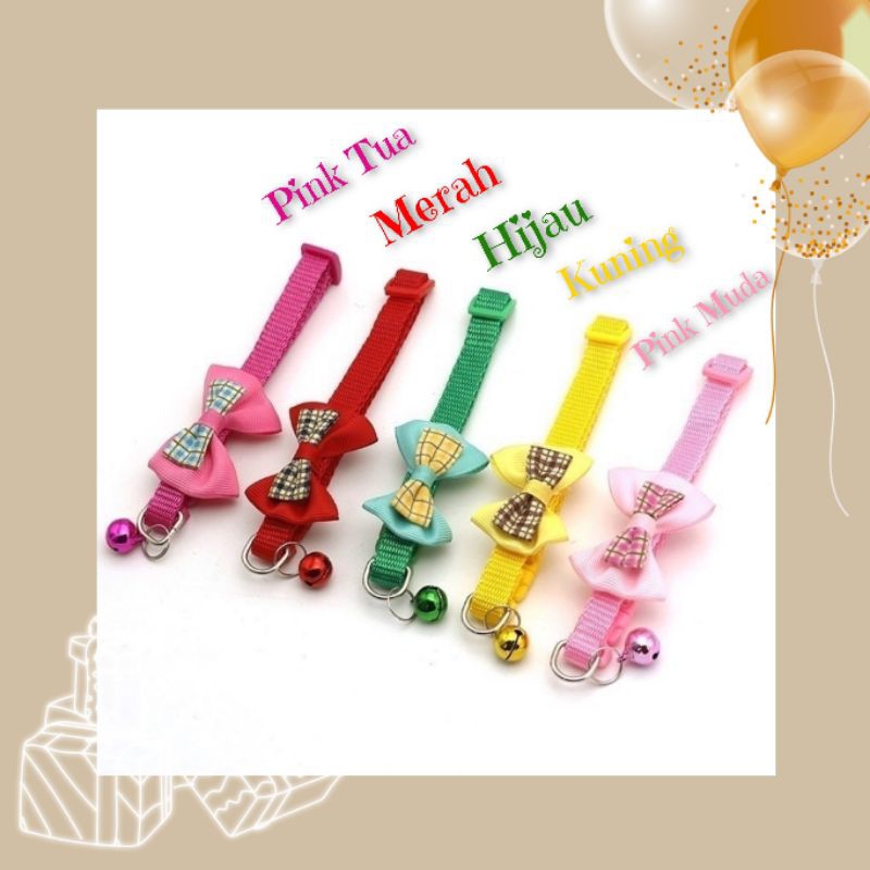Kalung Kucing dengan motif pita membuat kucing peliharaan anda tampil " modis & fashionable ' ๐ -Terdapat lonceng dengan kualitas bunyi nyaring -Kualitas dijamin bagus -Ukuran : Kucing (Maks Lingkar Leher 25CM)