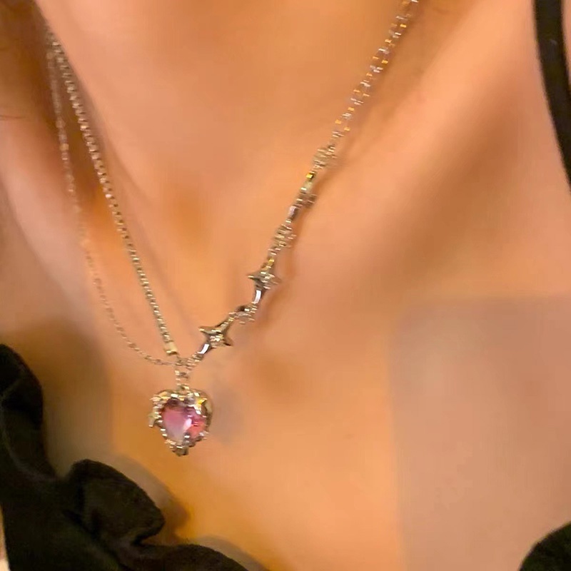 Detail Kalung Love Berlian Pink Besar Fashion Alloy Untuk Wanita