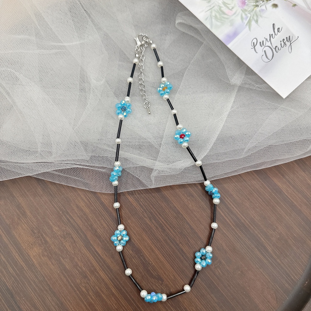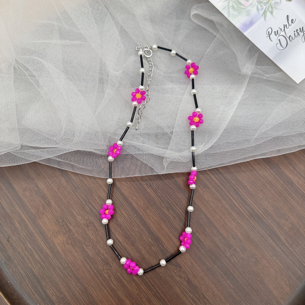 Detail Kalung Manik-Manik Beras Desain Bambu Sederhana Buatan Tangan Warna-Warni Bunga Kecil Rantai Klavikula