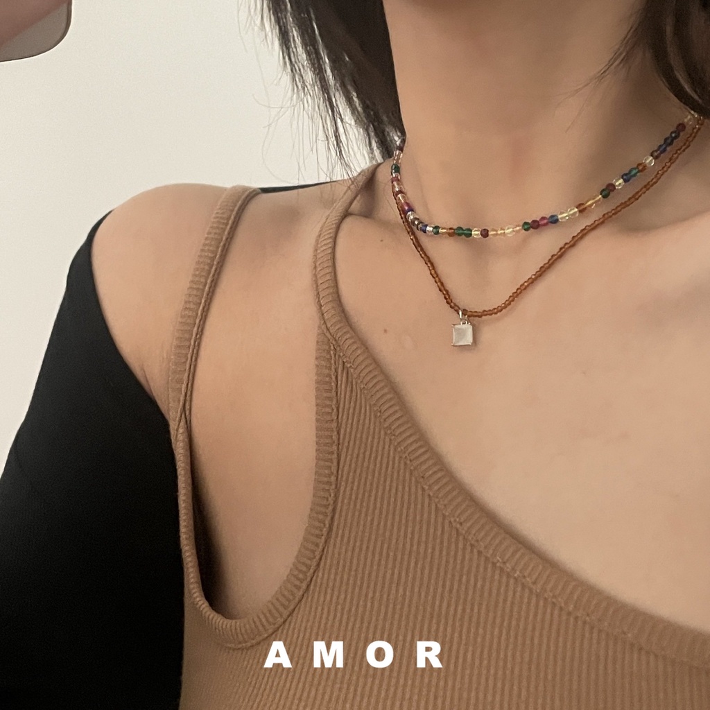 Detail Kalung Manik-Manik Dua Lapis Warna-Warni Gaya Korea
